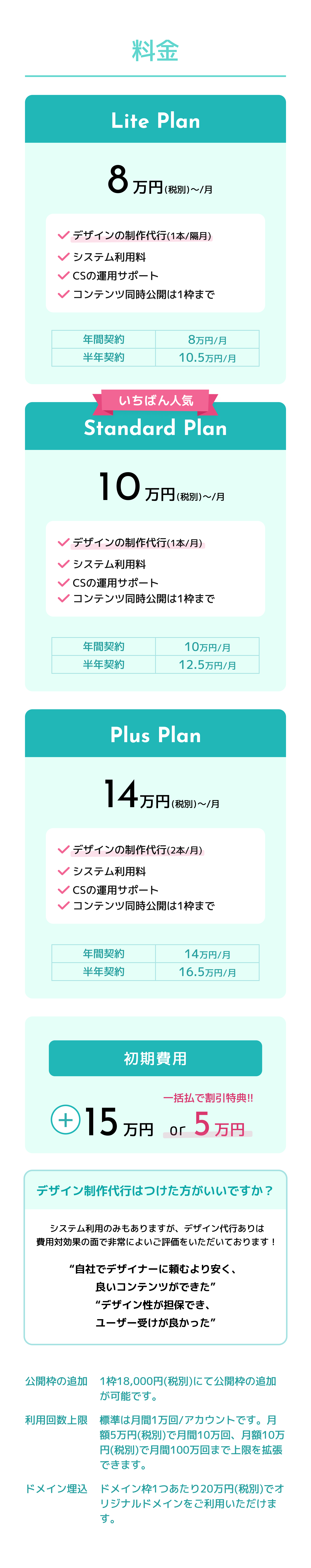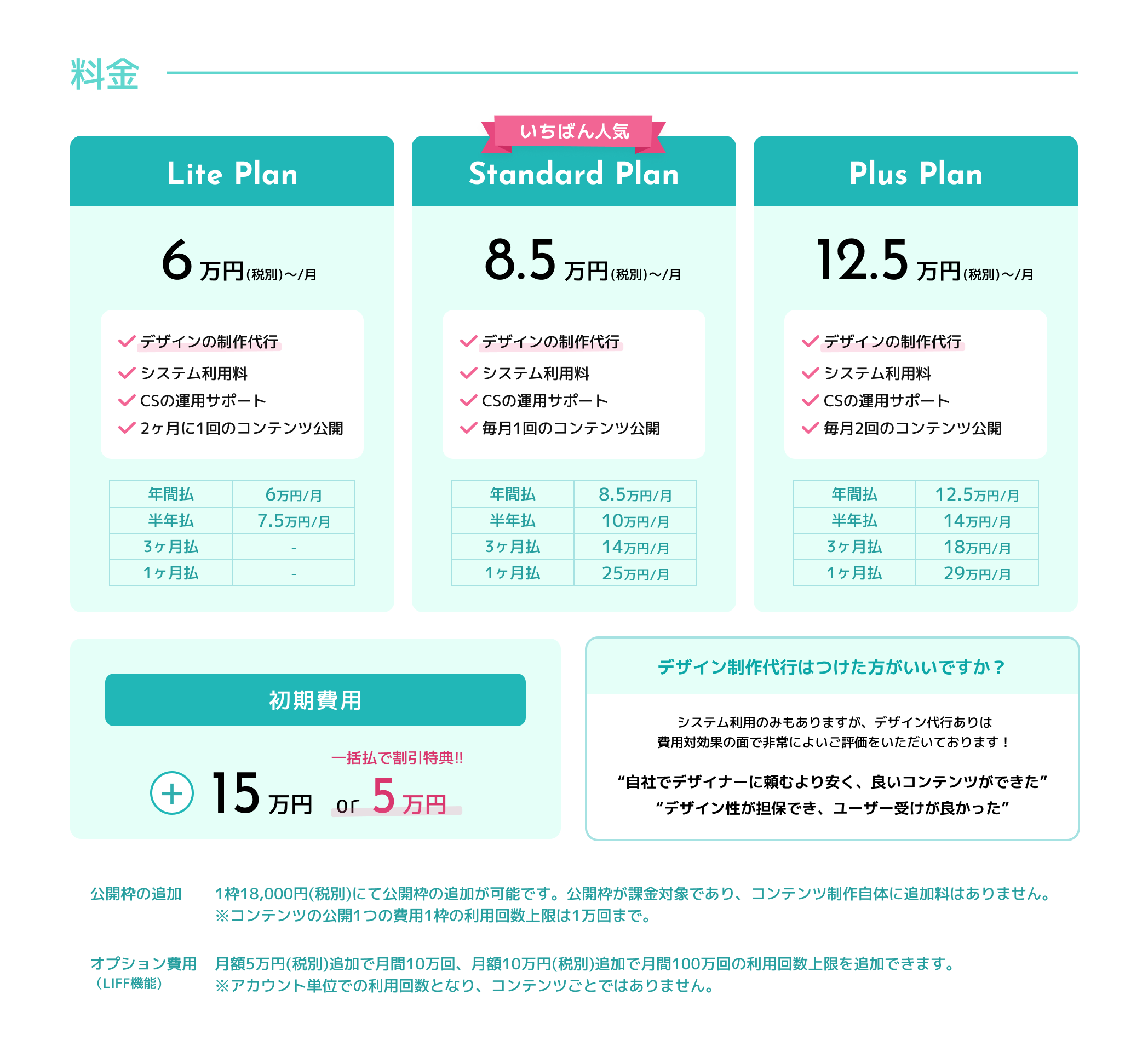 直感的でシンプルな操作画面により、専門知識がなくてもスムーズに設定やカスタマイズができます。短時間でプロモーションを開始できる点が特長です。