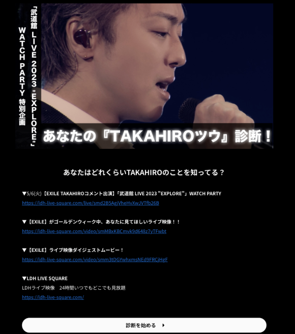続く EXILE TAKAHIROのツウ診断 では、マネージャー陣の協力もありSNS拡散が急速に広がりました。